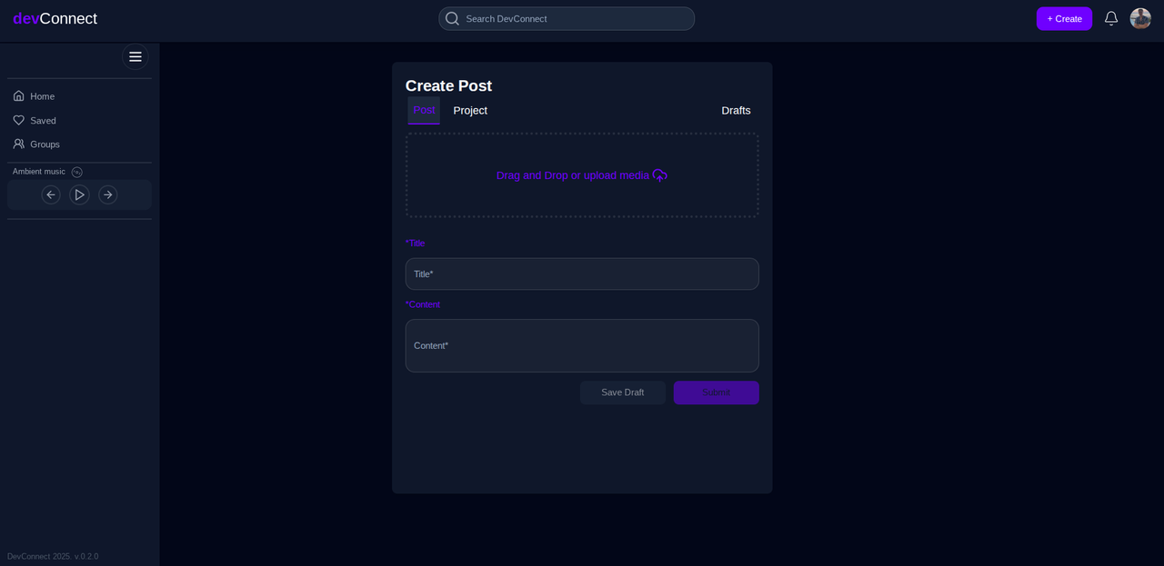 Article sharing social network for developers and software development topics. Features include authentication, managing posts and projects, and creating and joining topic-specific groups. Interacting with posts via likes and comments, searching content, viewing and editing profiles, and receiving notifications
